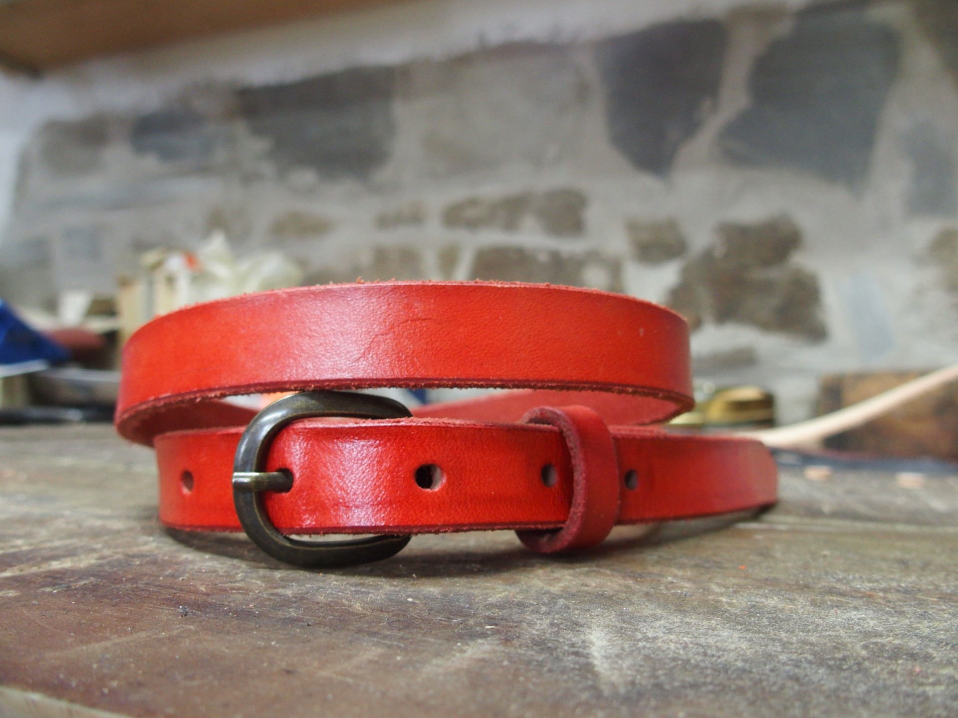 opasek červené barvy, šíře 2 cm, délka celé kožené části bez spony 96 cm-obvod pasu cca 79 cm, spíš pro mladé slečny nebo útlejší postavu